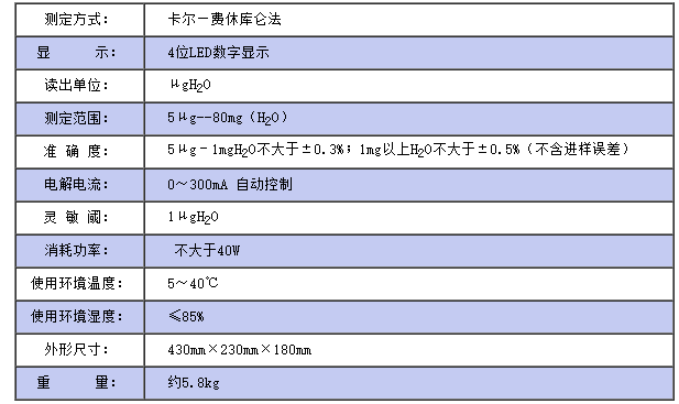 儀器符合GB/T7600及采用卡爾—費休法測定樣品中水分的有關標準,儀器采用了先進的自動控制電路,電解電流自動跟蹤控制,外型結構新穎,從而使該儀器工作更可靠,使用更方便, 具有分析速度快(一分鐘出結果)、操作簡便、精度高、自動性強等特點,廣泛應用于石油、化工、電力、鐵路、環保等部門。